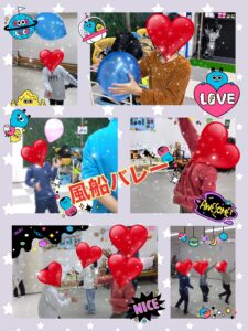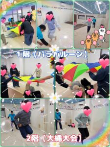 前にいる職員が紐と同じ色のボールを上に投げたら、同じ色の紐を取り、先に取ったほうが勝ちです😚⠀