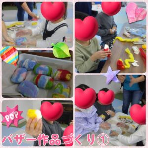 お花紙を細かくちぎって貼る作業では、指先を上手に使いながら集中して取り組むことができ、完成した作品を見て達成感いっぱいの表情を見せてくれました。お友達同士で見せ合いながら喜ぶ姿もとても微笑ましかったです。