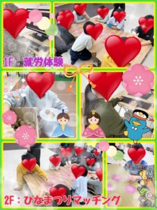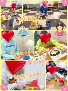 2日間かけて取り組んできたひな人形の装飾が、ついに完成しました。最後まで色合いやバランスを考えながら丁寧に仕上げる姿が見られ、「ここきれいにできたよ!」「かわいいね!」と嬉しそうにお話してくれる様子もありました。