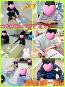 本日のレクリエーションは、1階と【カレンダー作り】2階【ベルトコンベアで運ぼう】をそれぞれで行いました😊
