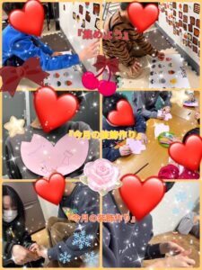 寒さが一段と厳しく、もうすぐお別れになってしまう子もいて、何かと淋しい時期です😌しかし、暖かくなれば新しいお友達も増えていくことでしょう👬そんな待ち遠しい春を思いながら、今月も装飾作りに励みます🤗