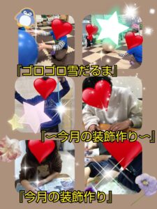 寒さが一段と厳しく、もうすぐお別れになってしまう子もいて、何かと淋しい時期です😌しかし、暖かくなれば新しいお友達も増えていくことでしょう👬そんな待ち遠しい春を思いながら、今月も装飾作りに励みます🤗