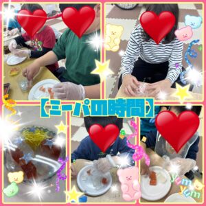 完成すると「できた!」「見て!」と嬉しそうに見せてくれ、達成感にあふれた表情がたくさん見られました。楽しみながら、指先の使い方や手順を守る力も育まれる素敵な時間となりました。
