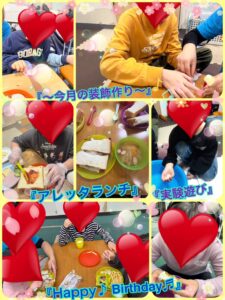 今月はお誕生日会が3回あり、本日は最後となる3回目のお誕生日会でした😊本日はあいにく誕生日の子はお休みでしたが、いつもと違うスペシャルおやつを食べたりするなどして、ゆったりと過ごしました😌✨スペシャルおやつのシュークリームに「美味しい😋」と嬉しそうな子どもたちでした🎶
