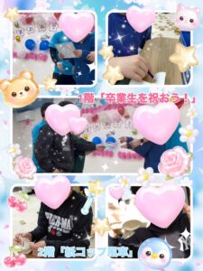 職員手作りのメッセージカードを渡した後に、卒業生からみんなへメッセージをもらい、最後に記念撮影をしました✨
