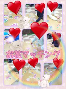 紙に印刷されたお花の中から、同じ絵柄を見つけて重ねていく活動です✨🔍