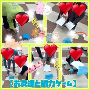「お友達と協力ゲーム」では、2人1組で息を合わせながら取り組む姿がたくさん見られました😊
