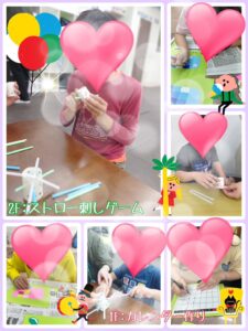 本日の2階のレクは、【ストロー刺しゲーム】をおこないました。