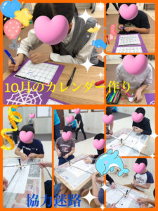 本日はカレンダー作りの最終日ということで①日付の記入②キャンディー作り③かぼちゃ作りと装飾の3つの工程を行ってもらいました。