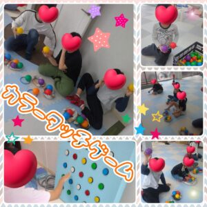 始めは「簡単❗簡単❗」となげピンポン玉を枠に入れていましたが、配置カードと同じ形を作る時には「全然違うとこはいった😡」同じチームのお友達に「そこじゃないよ😠」「狙ったけど入らなかったんだもん😓」と言い合いする場面も見られましたが、少しクールダウンを行い再度取り組んでいました😀⠀