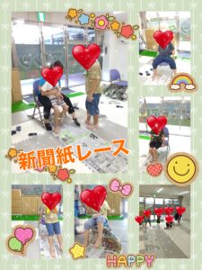 新聞紙を巻き取るスピードや方法にも一人ひとりの個性が出ていてチームワークが光ります🌈🌈