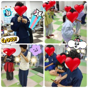 10/25(土)のプログラムは、スポーツチャンバラを行いました!普段は講師の方をお招きしていますが、本日はいつもと違い職員と子供達で行いました😉普段教えていただいている礼儀作法を意識しながら剣の使い方もみんな上手に扱うことができていました☺️