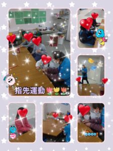 今日の指先運動は3本のカラー🪢ひもを、使って