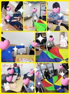 本日のレクリエーションは、1階【パラバルーン】で2階【パーソナルスペース・プライベートゾーンとは?】をそれぞれ行いました😊