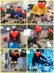 職員含めた4人1組になり、職員のバルーンを上下にする動きに合わせたり、みんながバルーンを離さないように力加減を抑えて動かしてもらいました。